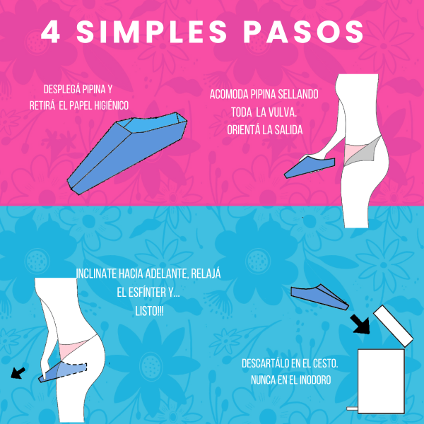 Dispositivo Pocket y Descartable para orinar de pie, ideal para mujeres de todas las edades. Ergonómico. Util en los post-operatorios, para las embarazadas, las convalencientes. Para evitar todo tipo de contacto con los inodoros, evitando contagios, ensuciarte o retener el deseo de micción por falta de ellos. Podés usarlo en baños tanto como al aire libre. La boquilla de salida se adapta para utilizar en el pico de una botella si no pudieras usarlo al aire libre. Ideal para las niñas que deben ir solas al baño y por su altura rozan el asiento del inodoro. Excelente para las mujeres que ya no pueden hacer de cuclillas.